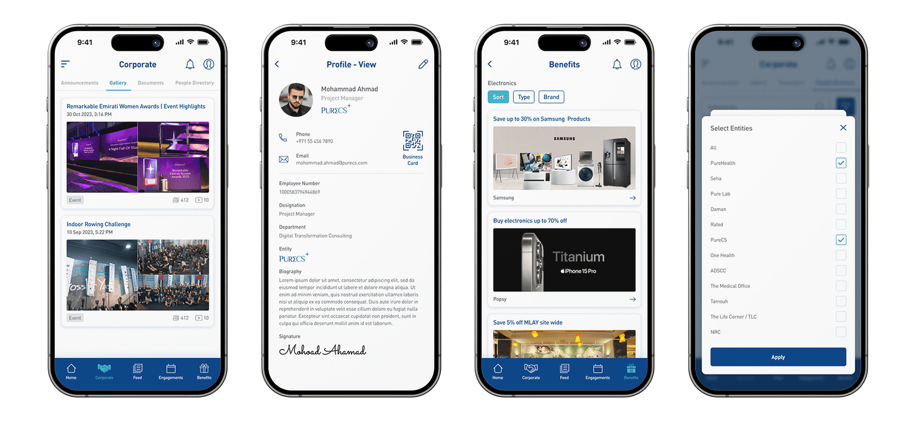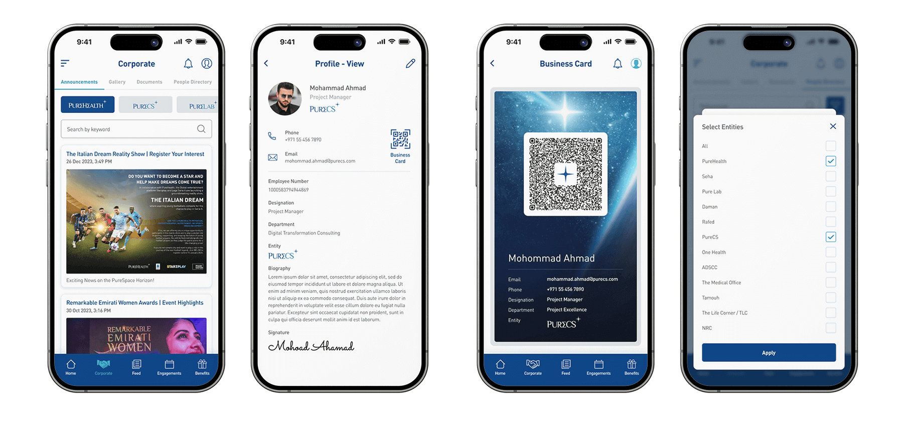 PureSpace is a mobile application developed to optimize healthcare corporate operations by providing executives and operations teams with real-time insights into hospital performance, resource utilization, and employee workflows. The project focused on creating a responsive, intuitive mobile interface that transforms complex operational data into actionable insights. Key metrics were prioritized, and information was consolidated to reduce cognitive load, enabling users to quickly assess operational status and take immediate action. Interactive elements and contextual alerts guide users to critical decisions, while role-specific dashboards ensure executives, managers, and staff can access the information most relevant to their responsibilities. The design also emphasized clarity, scalability, and consistency to support high-pressure, fast-paced decision-making environments. By simplifying complex datasets, streamlining workflows, and enhancing situational awareness, PureSpace empowers healthcare teams to make faster, more informed decisions, reduce operational friction, and improve overall efficiency across facilities.