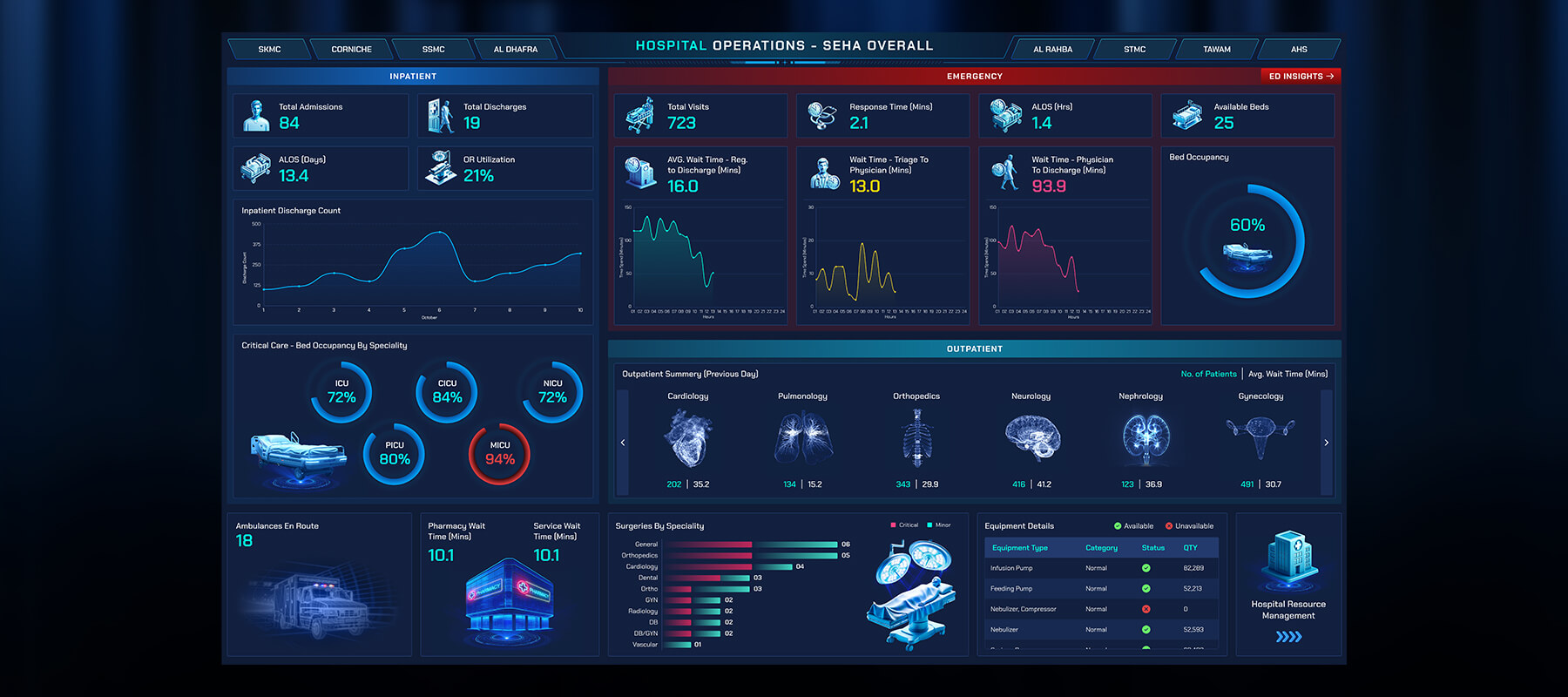 The Aldar Command Center has significantly enhanced the efficiency and effectiveness of day-to-day operations for command center operators. By providing a centralized, real-time view of hospital and emergency data, operators can quickly identify critical alerts, monitor patient flows, and manage resources without switching between multiple systems. The separation of OP, IP, and ED dashboards, along with interactive 3D hospital models and live incident mapping, allows operators to make rapid, informed decisions and coordinate responses with minimal delays. This streamlined workflow reduces operational bottlenecks, improves situational awareness, and ensures that hospitals and emergency teams remain proactive rather than reactive, ultimately strengthening the UAE’s overall healthcare and emergency response readiness.